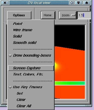 Currently, this resizing must be done intearactively by "trial-and-error", but note that once Start capture has been enabled, interactive resizing of the local view window will cause a graphics redraw and an associated diagnostic message from which the width of the image can be read off. In the example shown above, the window has been sized to produce images that are 256 pixels wide x 256 pixels high.