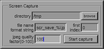 refresh_gl_display: saving screen to file /tmp/scr_save_0.jpeg vp:0,0,256,256 refresh_gl_display: saving screen to file /tmp/scr_save_1.jpeg vp:0,0,256,256 refresh_gl_display: saving screen to file /tmp/scr_save_2.jpeg vp:0,0,256,256 refresh_gl_display: saving screen to file /tmp/scr_save_3.jpeg vp:0,0,256,256The third and fourth numbers following vp: in the above messages are the width and height, respectively, of the graphics area that is being captured in the form of JPEG images.