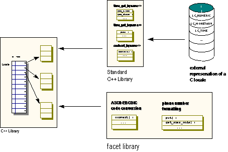 Build facet objects from the external representation of a C locale. This is done via the constructor of one of the byname[9] facet classes from the Standard C++ Library, as shown in Figure 11: